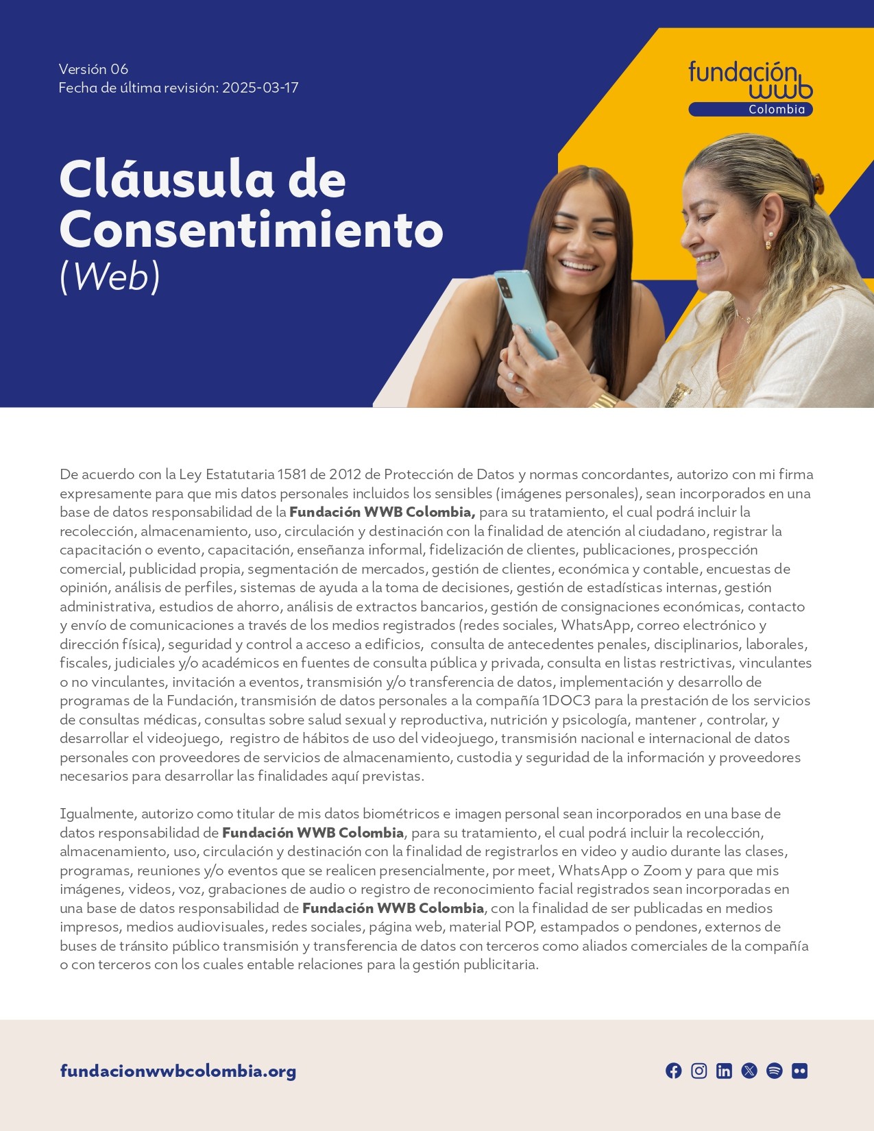 | Autorización para el tratamiento de datos de la Fundación WWB Colombia | Privacy policy | Authenticated users |